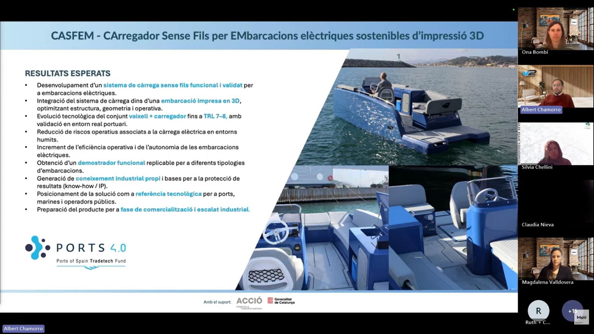 En el bloc dedicat a la presentació de projectes cofinançats amb convocatòries públiques, es va donar a conèixer el projecte CASFEM – CArregador Sense Fils per EMbarcacions elèctriques sostenibles d’impressió 3D, una iniciativa estratègica en l’àmbit de la mobilitat elèctrica marina i la fabricació additiva avançada.