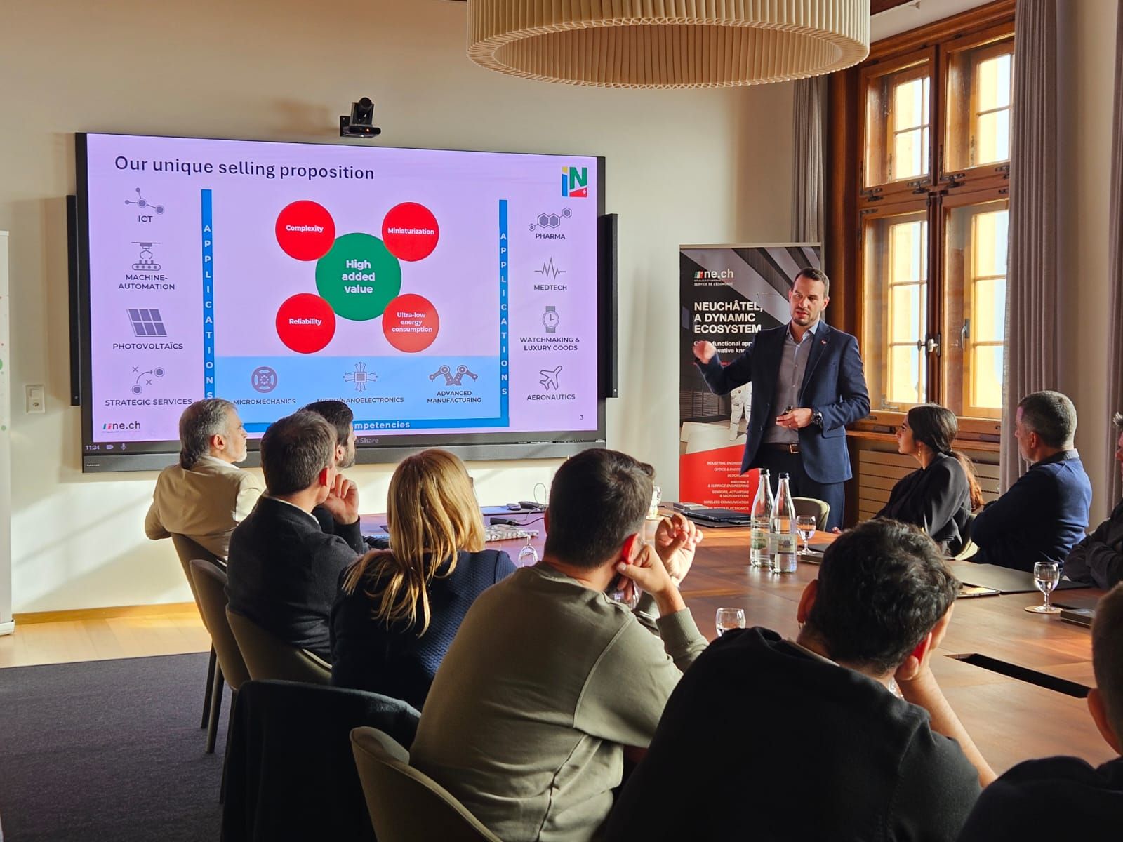 A continuació, el Service de l’Économie de Neuchâtel (NECO) va presentar les polítiques del cantó orientades a la innovació i l’atracció d’inversió industrial.