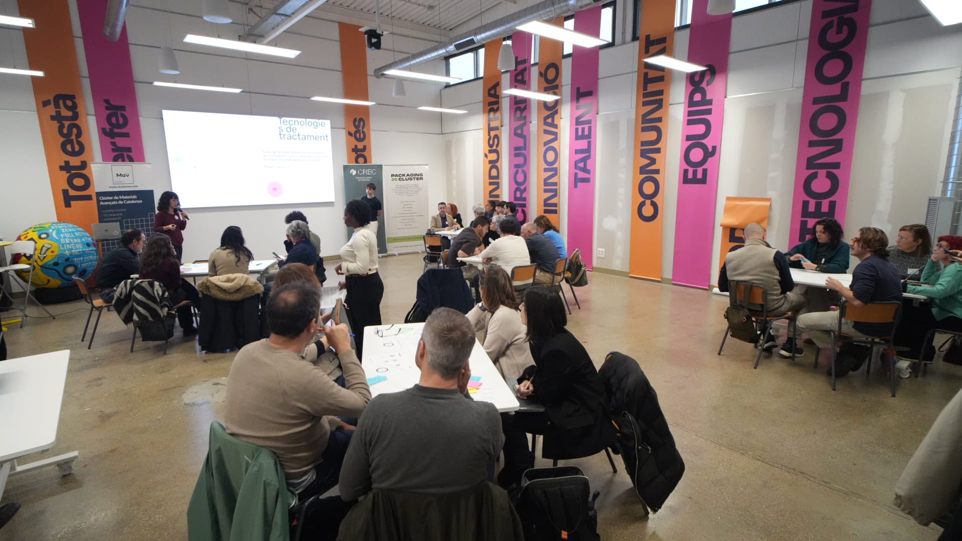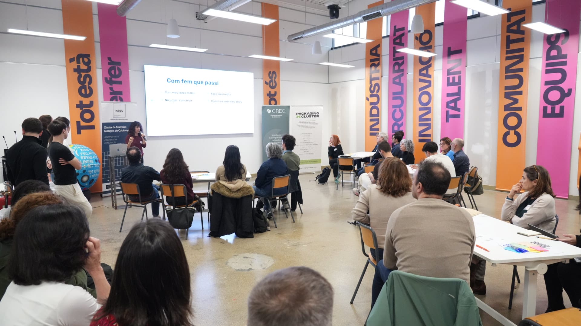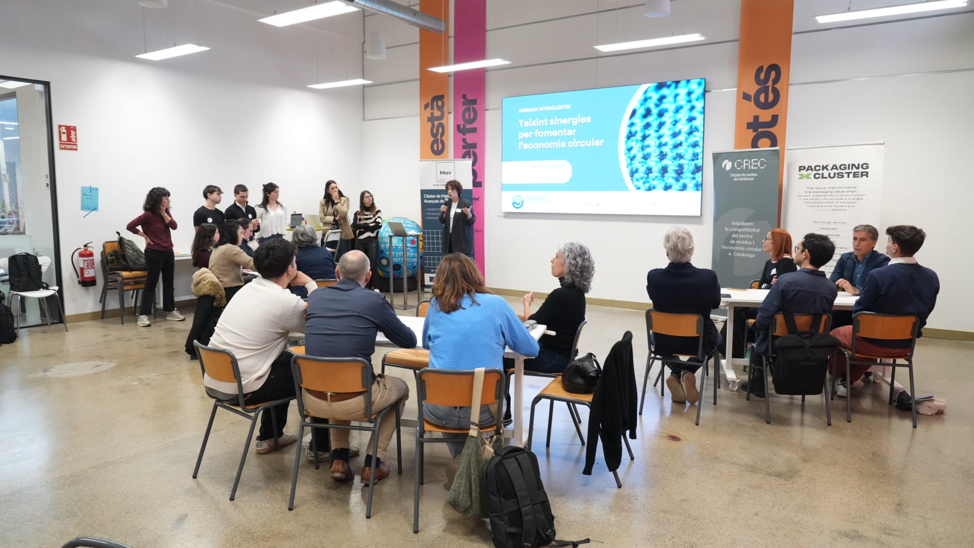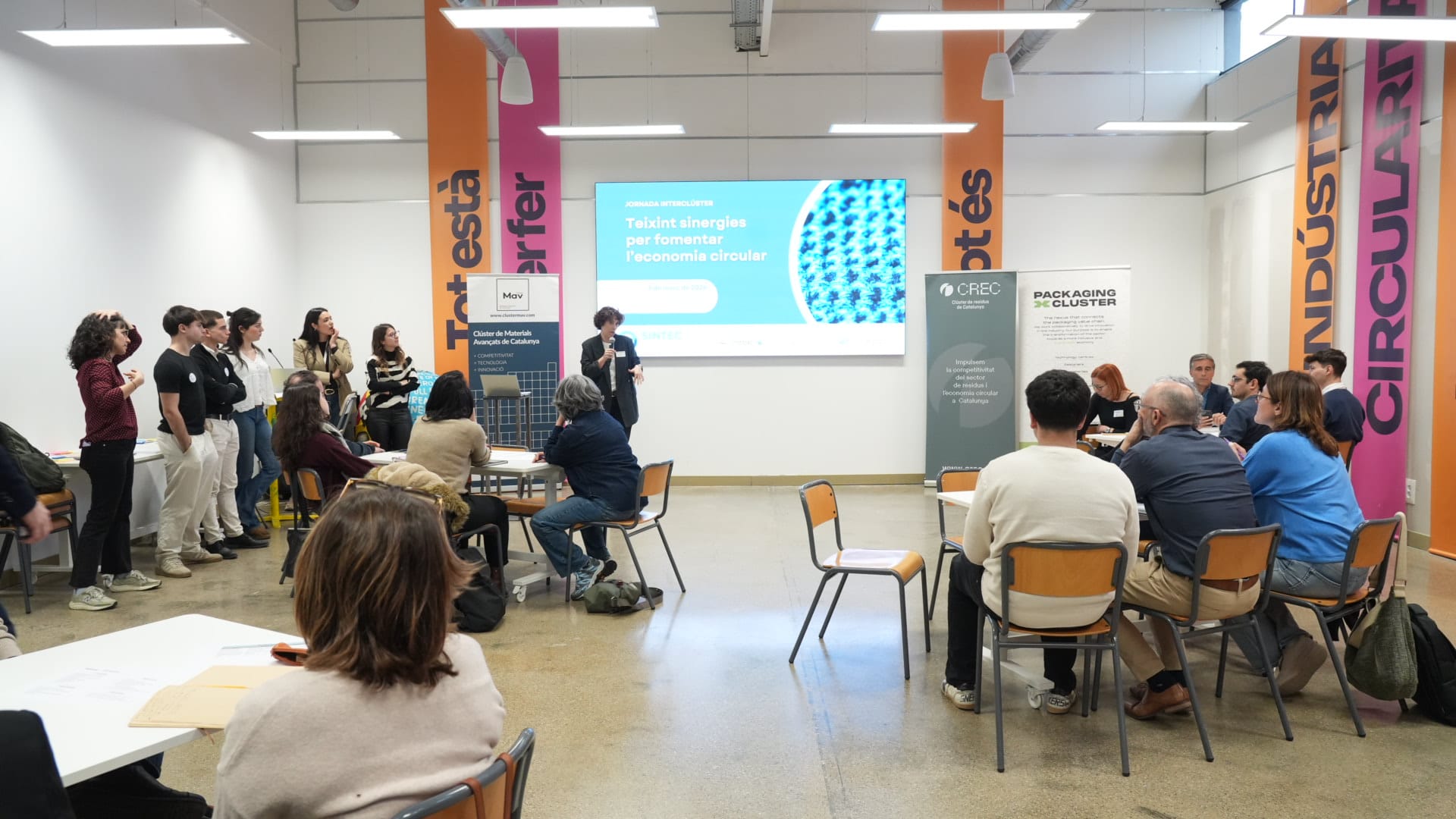 La sessió, organitzada en el marc del projecte impulsat conjuntament pel Clúster de Residus de Catalunya (CREC), Tèxtils.CAT, el Packaging Cluster i el Clúster MAV va reunir empreses i agents dels sectors del tèxtil tècnic, els materials avançats, el packaging i la gestió de residus per continuar explorant noves vies de circularitat industrial.