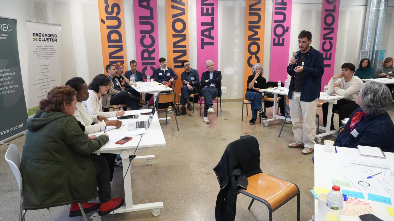 La jornada es va centrar en dinàmiques participatives orientades a abordar reptes reals identificats durant les sessions anteriors del projecte. Aquest enfocament pràctic va permetre analitzar com transformar residus —especialment del sector del tèxtil tècnic amb alta càrrega polimèrica— en noves oportunitats de valor per a altres sectors industrials, com l'envàs i l'embalatge.