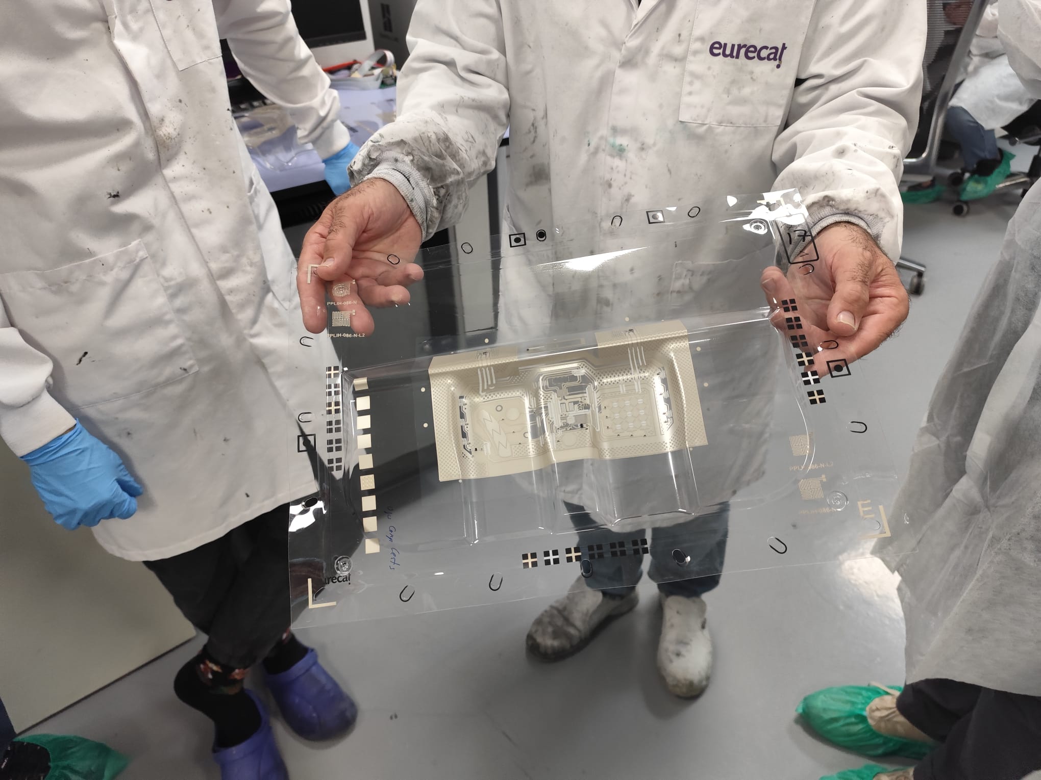 Durant la jornada, els participants van poder observar en directe les diferents etapes del procés productiu associat a la plastrònica, entre les quals destaquen: