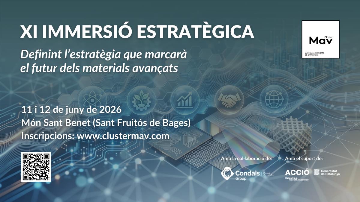 Paral·lelament, el Clúster MAV ha activat una oferta de patrocini vinculada a la Immersió Estratègica, adreçada a empreses que vulguin reforçar el seu posicionament dins l’ecosistema dels materials avançats.